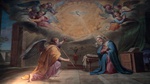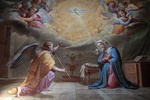 Rzym 14 - 18 07 2025 Bazylika św. Augustyna na Polu Marsowym- Basilica di Sant'Agostino in Campo Marzio. Poświęcona św. Augustynowi z Hippony. Wnętrze kościoła. fresk scena z życia Matki Boskiej - Zwiastowanie FOTO:HENRYK PRZONDZIONO /FOTO GOŚĆ