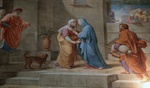 Rzym 14 - 18 07 2025 Bazylika św. Augustyna na Polu Marsowym- Basilica di Sant'Agostino in Campo Marzio. Poświęcona św. Augustynowi z Hippony. Wnętrze kościoła. fresk scena z życia Matki Boskiej - Nawiedzenie Elżbiety. FOTO:HENRYK PRZONDZIONO /FOTO GOŚĆ