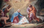 Rzym 14 - 18 07 2025 Bazylika św. Augustyna na Polu Marsowym- Basilica di Sant'Agostino in Campo Marzio. Poświęcona św. Augustynowi z Hippony. Wnętrze kościoła. fresk scena z życia Matki Boskiej - Boże Narodzenie FOTO:HENRYK PRZONDZIONO /FOTO GOŚĆ