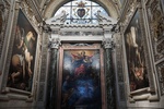 Rzym 21 03 2025 Piazza del Popolo bazylika Santa Maria del Popolo obecnie kościół tytularny kardynała Stanisława Dziwisza. Kaplica Cerasi , poświęcona Matce Bożej i świętym Piotrowi i Pawłowi. Na wprost obraz Wniebowzięcie Najświętszej Marii Panny nad ołtarzem jest dziełem Annibale Carracciego (1601). Po bokach z lewej obraz Nawrócenie Szawła, z prawej Ukrzyżowanie świętego Piotra autorstwa Caravaggio. FOTO:HENRYK PRZONDZIONO /FOTO GOŚĆ