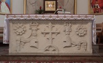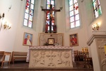 Stopnica 11 02 2026 Kościół pw. świętych Piotra i Pawła, powstał w XIV wieku z fundacji króla Kazimierza Wielkiego, jako pokuta za zabójstwo księdza Marcina Baryczki.W ołtarz została wbudowana kamienna płyta, służąca przed wiekami za antepedium ołtarzowe. Po prawej stronie widoczna płaskorzeżba przedstawiajaca głowę króla Kazimierza Wielkiego po lewej Jego godło - głowa byka. FOTO:HENRYK PRZONDZIONO /FOTO GOŚĆ