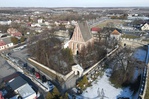 Stopnica 11 02 2026 Kościół pw. świętych Piotra i Pawła, powstał w XIV wieku z fundacji króla Kazimierza Wielkiego, jako pokuta za zabójstwo księdza Marcina Baryczki. N/z dzwonnica FOTO:HENRYK PRZONDZIONO /FOTO GOŚĆ