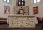 Stopnica 11 02 2026 Kościół pw. świętych Piotra i Pawła, powstał w XIV wieku z fundacji króla Kazimierza Wielkiego, jako pokuta za zabójstwo księdza Marcina Baryczki.W ołtarz została wbudowana kamienna płyta, służąca przed wiekami za antepedium ołtarzowe. Po prawej stronie widoczna płaskorzeżba przedstawiajaca głowę króla Kazimierza Wielkiego po lewej Jego godło - głowa byka. FOTO:HENRYK PRZONDZIONO /FOTO GOŚĆ