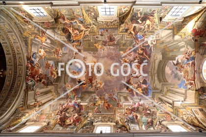 Rzym 14 07 2025 Kościół jezuitów pw. św. Ignacego Loyoli na Polu Marsowym. Sufit sklepienie fresk słynna kwadratura z 1685 roku jezuity Andrei del Pozzo. Apoteoza św. Ignacego, która przedstawia niebo otwierające się przed ojcem założycielem. FOTO:HENRYK PRZONDZIONO /FOTO GOŚĆ