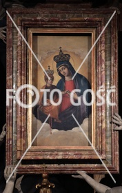 Rzym 14 - 18 07 2025 Kościół Matki Bożej Cudownej w Rzymie - Santa Maria dei Miracoli przy Piazza del Popolo. Wnetrze kościoła ołtarz główny z obrazem Matki Bożej Cudów, FOTO:HENRYK PRZONDZIONO /FOTO GOŚĆ