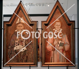 Włochy Perugia 25 06 2025 Muzeum Narodowe Umbrii. Ikona, Święty Ercolan ( Herkulan ) biskup z modelem miasta Perugia, męczennik zamordowany na rozkaz króla Ostrogotów Totyli w 549 roku i św Wawrzyniec. FOTO:HENRYK PRZONDZIONO /FOTO GOŚĆ