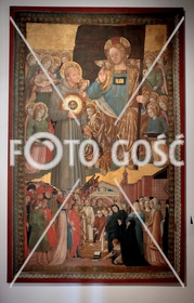 Włochy Perugia 25 06 2025 Muzeum Narodowe Umbrii. Gonfalon chorągiew sztandar procesyjny z 1465 r. przedstawiający Święty Bernard ze Sieny polecający mieszkańcom Perugii Chrystusa podczas dorocznej procesji odbywającej się 20 maja. FOTO:HENRYK PRZONDZIONO /FOTO GOŚĆ