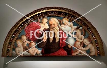 Włochy Perugia 25 06 2025 Muzeum Narodowe Umbrii. Mariano di ser Austerio. Wierzchołek ołtarza Compagnia di Nostra Donna.1510. Bóg Ojciec udzielający błogosławieństwa za pośrednictwem aniołów FOTO:HENRYK PRZONDZIONO /FOTO GOŚĆ