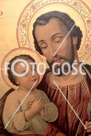 Katowice 09 10 2025 Nikiszowiec, Muzeum Historii Katowic wystawa: " Święci na sprawy wszelkie" Oleodruk święty Józef z Dzieciątkiem - fragment. Lata międzywojenne. FOTO:HENRYK PRZONDZIONO /FOTO GOŚĆ