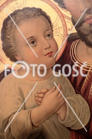 Katowice 09 10 2025 Nikiszowiec, Muzeum Historii Katowic wystawa: " Święci na sprawy wszelkie" Oleodruk święty Józef z Dzieciątkiem - fragment. Lata międzywojenne. FOTO:HENRYK PRZONDZIONO /FOTO GOŚĆ