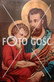Katowice 09 10 2025 Nikiszowiec, Muzeum Historii Katowic wystawa: " Święci na sprawy wszelkie" Oleodruk święty Józef z Dzieciątkiem - fragment. I poł XX w. FOTO:HENRYK PRZONDZIONO /FOTO GOŚĆ
