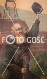 Katowice 09 10 2025 Nikiszowiec, Muzeum Historii Katowic wystawa: " Święci na sprawy wszelkie" Oleodruk święta Barbara - fragment - górnik FOTO:HENRYK PRZONDZIONO /FOTO GOŚĆ