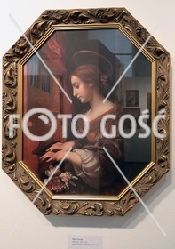 Katowice 09 10 2025 Nikiszowiec, Muzeum Historii Katowic wystawa: " Święci na sprawy wszelkie" Oleodruk święta Cecylia. I poł XX w. FOTO:HENRYK PRZONDZIONO /FOTO GOŚĆ