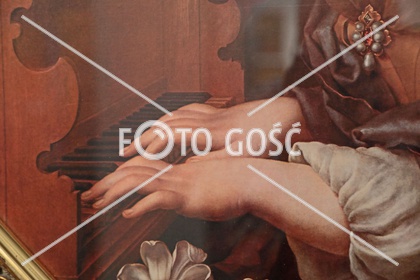Katowice 09 10 2025 Nikiszowiec, Muzeum Historii Katowic wystawa: " Święci na sprawy wszelkie" Oleodruk święta Cecylia. I poł XX w. fragment. FOTO:HENRYK PRZONDZIONO /FOTO GOŚĆ