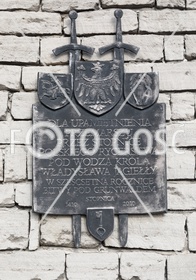 Stopnica 11 02 2026 Kościół pw. świętych Piotra i Pawła, powstał w XIV wieku z fundacji króla Kazimierza Wielkiego, jako pokuta za zabójstwo księdza Marcina Baryczki. N/z tablica upamiętniajaca przemarsz wojsk przez Stopnicę pod wodzą Władysława Jagiełły FOTO:HENRYK PRZONDZIONO /FOTO GOŚĆ