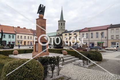 03.02.2026 - Bierun . Rynek z widocznym w tle kosciol swietego Bartlomieja .
